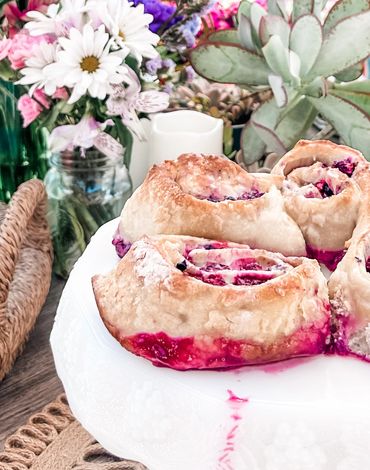 A sweet morning treat filled with dried cranberries, walnuts and a cinnamon butter glaze.